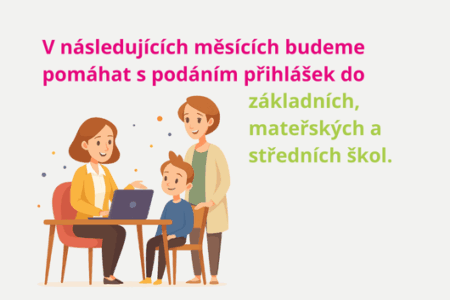 V nejbližších měsících vám rádi pomůžeme se zápisy do mateřských a základních škol i s podáváním přihlášek na střední školy.Na našem webu a sociálních sítích budeme průběžně zveřejňovat termíny i